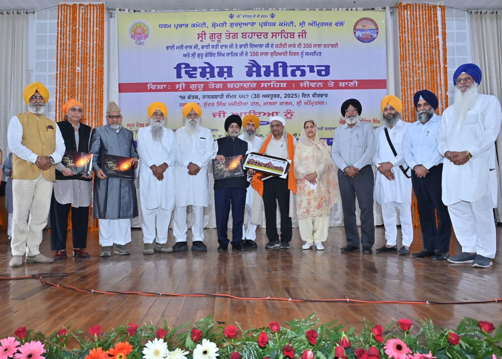 ਨਵੀਂ ਦਿੱਲੀ, 30 ਅਕਤੂਬਰ (ਮਨਪ੍ਰੀਤ ਸਿੰਘ ਖਾਲਸਾ):-ਸ਼੍ਰੋਮਣੀ ਗੁਰਦੁਆਰਾ ਪ੍ਰਬੰਧਕ ਕਮੇਟੀ ਵੱਲੋਂ ਨੌਵੇਂ ਪਾਤਸ਼ਾਹ ਸ੍ਰੀ ਗੁਰੂ ਤੇਗ ਬਹਾਦਰ ਸਾਹਿਬ ਜੀ, ਭਾਈ ਮਤੀ ਦਾਸ ਜੀ, ਭਾਈ ਸਤੀ ਦਾਸ ਜੀ ਅਤੇ ਭਾਈ ਦਿਆਲਾ ਜੀ ਦੇ ਸ਼ਹੀਦੀ ਸਾਕੇ ਦੀ 350 ਸਾਲਾ ਸ਼ਤਾਬਦੀ ਅਤੇ ਸ੍ਰੀ ਗੁਰੂ ਗੋਬਿੰਦ ਸਿੰਘ ਜੀ ਦੇ 350 ਸਾਲਾ ਗੁਰਿਆਈ ਦਿਵਸ ਨੂੰ ਸਮਰਪਿਤ ਅੱਜ ਖਾਲਸਾ ਕਾਲਜ ਅੰਮ੍ਰਿਤਸਰ ਵਿਖੇ ‘ਸ੍ਰੀ ਗੁਰੂ ਤੇਗ ਬਹਾਦਰ ਸਾਹਿਬ: ਜੀਵਨ ਤੇ ਬਾਣੀ’ ਵਿਸ਼ੇ ’ਤੇ ਪ੍ਰਭਾਵਸ਼ਾਲੀ ਸੈਮੀਨਾਰ ਕਰਵਾਇਆ ਗਿਆ। ਸੈਮੀਨਾਰ ਦੌਰਾਨ ਪੁੱਜੇ ਬੁਲਾਰਿਆਂ ਨੇ ਨੌਵੇਂ ਪਾਤਸ਼ਾਹ ਜੀ ਵੱਲੋਂ ਧਰਮਾਂ ਦੀ ਅਜ਼ਾਦੀ ਲਈ ਦਿੱਤੀ ਸ਼ਹਾਦਤ ਦੇ ਸੰਕਲਪ ਨੂੰ ਯਾਦ ਕੀਤਾ ਅਤੇ ਗੁਰੂ ਸਾਹਿਬ ਦੇ ਜੀਵਨ ਅਤੇ ਉਨ੍ਹਾਂ ਦੀਆਂ ਸਿੱਖਿਆਵਾਂ ’ਤੇ ਰੌਸ਼ਨੀ ਪਾਈ। ਇਸ ਮੌਕੇ ਸ਼੍ਰੋਮਣੀ ਕਮੇਟੀ ਦੇ ਮੁੱਖ ਸਕੱਤਰ ਸ. ਕੁਲਵੰਤ ਸਿੰਘ ਮੰਨਣ ਨੇ ਆਪਣੇ ਸੰਬੋਧਨ ਵਿਚ ਕਿਹਾ ਕਿ ਨੌਵੇਂ ਪਾਤਸ਼ਾਹ ਜੀ ਦੀ ਸ਼ਹਾਦਤ ਨੇ ਦੇਸ਼ ਦੇ ਲੋਕਾਂ ਨੂੰ ਧਾਰਮਿਕ ਅਜ਼ਾਦੀ ਨਾਲ ਜਿਊਣ ਦਾ ਮਾਰਗ ਦਿੱਤਾ। ਉਨ੍ਹਾਂ ਕਿਹਾ ਕਿ ਗੁਰੂ ਸਾਹਿਬ ਨਾਲ ਸ਼ਹਾਦਤ ਪ੍ਰਾਪਤ ਕਰਨ ਵਾਲੇ ਭਾਈ ਮਤੀ ਦਾਸ ਜੀ, ਭਾਈ ਸਤੀ ਦਾਸ ਜੀ ਅਤੇ ਭਾਈ ਦਿਆਲਾ ਜੀ ਨੇ ਆਖ਼ਰੀ ਸਮੇਂ ਤੱਕ ਮੁੱਖ ਗੁਰੂ ਵੱਲ ਰੱਖਣ ਦੀ ਇੱਛਾ ਨੇ ਗੁਰੂ ਪ੍ਰਤੀ ਸਮਰਪਣ ਦੀ ਮਿਸਾਲ ਕਾਇਮ ਕੀਤੀ। ਇਸੇ ਤਰ੍ਹਾਂ ਅੰਤ੍ਰਿੰਗ ਕਮੇਟੀ ਮੈਂਬਰ ਬੀਬੀ ਹਰਜਿੰਦਰ ਕੌਰ ਨੇ ਕਿਹਾ ਕਿ ਸੰਸਾਰ ’ਤੇ ਅਮਨ ਦੇ ਸੁਨੇਹੇ ਲਈ ਨੌਵੇਂ ਪਾਤਸ਼ਾਹ ਜੀ ਵੱਲੋਂ ਦੂਸਰਿਆਂ ਲਈ ਦਿੱਤੀ ਸ਼ਹਾਦਤ ਨੂੰ ਵਿਸ਼ਵ ਪੱਧਰ ’ਤੇ ਮਨੁੱਖੀ ਅਧਿਕਾਰ ਦਿਵਸ ਵਜੋਂ ਮਨਾਉਣਾ ਚਾਹੀਦਾ ਹੈ। ਉਨ੍ਹਾਂ ਕਿਹਾ ਕਿ ਇਸ ਮੌਕੇ ਭਾਈ ਲੱਖੀ ਸ਼ਾਹ ਵਣਜਾਰਾ ਤੇ ਭਾਈ ਜੈਤਾ ਜੀ ਦੀ ਕੁਰਬਾਨੀ ਨੂੰ ਯਾਦ ਕਰਨਾ ਵੀ ਸਾਡਾ ਫ਼ਰਜ਼ ਹੈ। ਸੈਮੀਨਰ ਦੌਰਾਨ ਡਾ. ਰੌਣਕੀ ਰਾਮ, ਡਾ. ਗੁਰਚਰਨਜੀਤ ਸਿੰਘ ਲਾਂਬਾ, ਡਾ. ਪਿਆਰੇ ਲਾਲ ਗਰਗ, ਡਾ. ਮੁਹੰਮਦ ਸਲੀਮ, ਡਾ. ਧਰਮ ਸਿੰਘ ਅਤੇ ਖਾਲਸਾ ਕਾਲਜ ਅੰਮ੍ਰਿਤਸਰ ਦੇ ਪ੍ਰਿੰਸੀਪਲ ਡਾ. ਆਤਮ ਸਿੰਘ ਨੇ ਵੀ ਸੰਬੋਧਨ ਕੀਤਾ। ਬੁਲਾਰਿਆਂ ਨੇ ਆਪਣੇ ਭਾਸ਼ਣ ਵਿਚ ਕਿਹਾ ਕਿ ਗੁਰੂ ਸਾਹਿਬ ਦੀ ਸ਼ਹਾਦਤ ਦੇ ਉਦੇਸ਼ ਨੂੰ ਸੀਮਤ ਨਹੀਂ ਕੀਤਾ ਜਾ ਸਕਦਾ। ਦੁਨੀਆਂ ਦੇ ਇਤਿਹਾਸ ਅੰਦਰ ਧਰਮ ਦੀ ਰੱਖਵਾਲੀ ਅਤੇ ਮਨੁਖੀ ਅਧਿਕਾਰਾਂ ਲਈ ਦਿੱਤੀ ਸ਼ਹਾਦਤ ਵੱਡੇ ਅਰਥ ਰੱਖਦੀ ਹੈ ਅਤੇ ਇਹ ਸ਼ਹਾਦਤ ਜ਼ੁਲਮੀ ਹਕੀਮਤ ਦੇ ਵਿਰੁੱਧ ਅਤੇ ਮਜ਼ਲੂਮਾਂ ਦੀ ਰਾਖੀ ਲਈ ਸੀ। ਬੁਲਾਰਿਆਂ ਨੇ ਕਿਹਾ ਕਿ ਅੱਜ ਵੀ ਹੁਕਮਰਾਨਾਂ ਵੱਲੋਂ ਦੂਸਰੇ ਧਰਮਾਂ ਨੂੰ ਕਮਜ਼ੋਰ ਕਰਨ ਦੇ ਯਤਨਾਂ ਤੋਂ ਸੁਚੇਤ ਹੋਣ ਦੀ ਲੋੜ ਹੈ। ਇਸ ਮੌਕੇ ਖਾਲਸਾ ਯੂਨੀਵਰਸਿਟੀ ਦੇ ਵਾਈਸ ਚਾਂਸਲਰ ਡਾ. ਮਹਿਲ ਸਿੰਘ ਨੇ ਧੰਨਵਾਦੀ ਭਾਸ਼ਣ ਵਿਚ ਸ਼੍ਰੋਮਣੀ ਕਮੇਟੀ ਵੱਲੋਂ ਗੁਰੂ ਸਾਹਿਬ ਦੇ ਸੰਦੇਸ਼ ਨੂੰ ਪ੍ਰਚਾਰਨ ਲਈ ਕੀਤੇ ਜਾ ਰਹੇ ਯਤਨਾਂ ਦੀ ਸ਼ਲਾਘਾ ਕੀਤੀ। ਇਸ ਮੌਕੇ ਸ਼੍ਰੋਮਣੀ ਕਮੇਟੀ ਅਤੇ ਖਾਲਸਾ ਕਾਲਜ ਦੇ ਪ੍ਰਬੰਧਕਾਂ ਵੱਲੋਂ ਵਿਦਵਾਨਾਂ ਅਤੇ ਪ੍ਰਮੁੱਖ ਸ਼ਖ਼ਸੀਅਤਾਂ ਨੂੰ ਸਨਮਾਨਿਤ ਵੀ ਕੀਤਾ ਗਿਆ। ਸਟੇਜ਼ ਦੀ ਸੰਚਾਲਨ ਮੀਤ ਸਕੱਤਰ ਸ. ਜਸਵਿੰਦਰ ਸਿੰਘ ਜੱਸੀ ਵੱਲੋਂ ਕੀਤਾ ਗਿਆ।