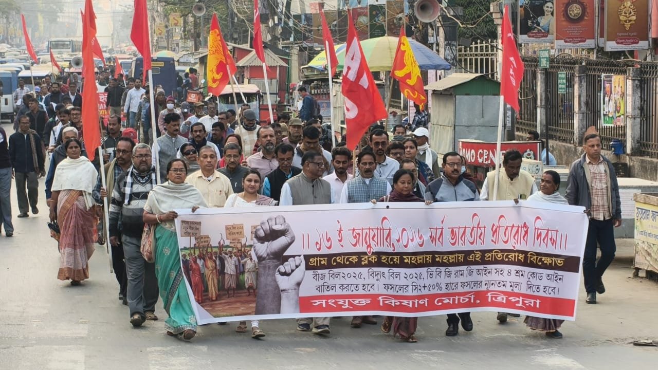 ਨਵੀਂ ਦਿੱਲੀ 16 ਜਨਵਰੀ (ਮਨਪ੍ਰੀਤ ਸਿੰਘ ਖਾਲਸਾ):- ਸੰਯੁਕਤ ਕਿਸਾਨ ਮੋਰਚਾ ਵੱਲੋਂ ਅੱਜ 16 ਜਨਵਰੀ 2026 ਨੂੰ ਮਨਾਏ ਗਏ ਸਰਬ ਭਾਰਤੀ ਵਿਰੋਧ ਦਿਵਸ ਦੇ ਸੱਦੇ ‘ਤੇ, ਦੇਸ਼ ਭਰ ਵਿੱਚ ਕਿਸਾਨਾਂ, ਖੇਤੀਬਾੜੀ ਕਾਮਿਆਂ, ਪੇਂਡੂ ਮਜ਼ਦੂਰਾਂ ਅਤੇ ਮਿਹਨਤਕਸ਼ ਲੋਕਾਂ ਦੀ ਵੱਡੇ ਪੱਧਰ ‘ਤੇ ਭਾਗੀਦਾਰੀ ਅਤੇ ਲਾਮਬੰਦੀ ਦੇਖੀ ਗਈ। ਪਿੰਡ ਅਤੇ ਜ਼ਿਲ੍ਹਾ ਪੱਧਰ ‘ਤੇ ਉਤਸ਼ਾਹਜਨਕ ਭਾਗੀਦਾਰੀ ਨਾਲ ਪੰਜਾਬ, ਹਰਿਆਣਾ, ਦਿੱਲੀ, ਉਤਰਾਖੰਡ, ਉੱਤਰ ਪ੍ਰਦੇਸ਼, ਬਿਹਾਰ, ਤੇਲੰਗਾਨਾ, ਗੁਜਰਾਤ, ਰਾਜਸਥਾਨ, ਕੇਰਲ, ਤ੍ਰਿਪੁਰਾ ਅਤੇ ਪੱਛਮੀ ਬੰਗਾਲ ਵਰਗੇ ਕਈ ਰਾਜਾਂ ਵਿੱਚ ਸਹੁੰ-ਪੱਤਰ ਪ੍ਰੋਗਰਾਮ, ਵਿਰੋਧ ਪ੍ਰਦਰਸ਼ਨ, ਮੀਟਿੰਗਾਂ ਅਤੇ ਪ੍ਰਦਰਸ਼ਨ ਸਫਲਤਾਪੂਰਵਕ ਆਯੋਜਿਤ ਕੀਤੇ ਗਏ। ਇਸ ਮੌਕੇ ‘ਤੇ, ਕਿਸਾਨਾਂ ਅਤੇ ਮਿਹਨਤਕਸ਼ ਲੋਕਾਂ ਨੇ ਸਮੂਹਿਕ ਤੌਰ ‘ਤੇ ਭਾਜਪਾ ਦੀ ਅਗਵਾਈ ਵਾਲੀ ਐਨਡੀਏ ਸਰਕਾਰ ਦੀਆਂ ਕਿਸਾਨ-ਵਿਰੋਧੀ, ਮਜ਼ਦੂਰ-ਵਿਰੋਧੀ ਅਤੇ ਕਾਰਪੋਰੇਟ-ਪੱਖੀ ਨੀਤੀਆਂ ਵਿਰੁੱਧ ਸੰਯੁਕਤ ਸੰਘਰਸ਼ ਜਾਰੀ ਰੱਖਣ ਲਈ ਨਵੇਂ ਸਾਲ ਦਾ ਪ੍ਰਣ ਲਿਆ। ਪ੍ਰੋਗਰਾਮਾਂ ਨੇ ਬੀਜ ਬਿੱਲ 2025, ਬਿਜਲੀ ਬਿੱਲ 2025, ਵੀ ਬੀ ਗ੍ਰਾਮਜੀ ਐਕਟ 2025, ਅਤੇ ਚਾਰ ਕਿਰਤ ਕੋਡਾਂ ਦਾ ਸਖ਼ਤ ਵਿਰੋਧ ਕੀਤਾ, ਜੋ ਰੋਜ਼ੀ-ਰੋਟੀ, ਖੁਰਾਕ ਸੁਰੱਖਿਆ, ਰੁਜ਼ਗਾਰ ਗਰੰਟੀ ਅਤੇ ਮਜ਼ਦੂਰਾਂ ਦੇ ਅਧਿਕਾਰਾਂ ਨੂੰ ਖਤਰੇ ਵਿੱਚ ਪਾਉਂਦੇ ਹਨ, ਅਤੇ ਨਾਲ ਹੀ ਸੰਘਵਾਦ ਦੇ ਸਿਧਾਂਤਾਂ ਨੂੰ ਖੋਖਲਾ ਕਰਦੇ ਹਨ। ਐਸਕੇਐਮ ਦਾ ਕਹਿਣਾ ਹੈ ਕਿ ਰਾਜਾਂ ਵਿੱਚ ਵਿਆਪਕ ਅਤੇ ਅਨੁਸ਼ਾਸਿਤ ਭਾਗੀਦਾਰੀ ਭਾਰਤ ਦੇ ਮਿਹਨਤਕਸ਼ ਲੋਕਾਂ ਦੀ ਆਪਣੇ ਅਧਿਕਾਰਾਂ ਅਤੇ ਰੋਜ਼ੀ-ਰੋਟੀ ਦੀ ਰੱਖਿਆ ਲਈ ਵਧ ਰਹੀ ਏਕਤਾ ਅਤੇ ਦ੍ਰਿੜਤਾ ਨੂੰ ਦਰਸਾਉਂਦੀ ਹੈ। ਅਖਿਲ ਭਾਰਤੀ ਵਿਰੋਧ ਦਿਵਸ ਇਹਨਾਂ ਕਾਨੂੰਨਾਂ ਨੂੰ ਰੱਦ ਕਰਨ ਅਤੇ ਗਾਰੰਟੀਸ਼ੁਦਾ ਖਰੀਦ, ਰੁਜ਼ਗਾਰ ਸੁਰੱਖਿਆ, ਸਮਾਜਿਕ ਨਿਆਂ ਅਤੇ ਸੰਘੀ ਅਧਿਕਾਰਾਂ ਦੇ ਨਾਲ ਐਸਐਸਪੀ ਪ੍ਰਾਪਤ ਕਰਨ ਲਈ ਇੱਕ ਇਕਸਾਰ, ਸੰਯੁਕਤ, ਪੂਰੇ ਭਾਰਤ ਵਿੱਚ ਅੰਦੋਲਨ ਨੂੰ ਮਜ਼ਬੂਤ ਕਰਨ ਵਿੱਚ ਇੱਕ ਮਹੱਤਵਪੂਰਨ ਕਦਮ ਹੈ। ਸੰਯੁਕਤ ਕਿਸਾਨ ਮੋਰਚਾ ਆਉਣ ਵਾਲੇ ਸਮੇਂ ਵਿੱਚ ਕੇਂਦਰੀ ਟਰੇਡ ਯੂਨੀਅਨਾਂ, ਖੇਤੀਬਾੜੀ ਮਜ਼ਦੂਰ ਯੂਨੀਅਨਾਂ ਅਤੇ ਦੇਸ਼ ਦੇ ਵੱਡੇ ਲੋਕਤੰਤਰੀ ਵਰਗਾਂ ਨਾਲ ਵਿਸ਼ਵਾਸ ਅਤੇ ਉਮੀਦ ਨਾਲ ਸੰਘਰਸ਼ਾਂ ਨੂੰ ਤੇਜ਼ ਕਰਦਾ ਰਹੇਗਾ, ਤਾਂ ਜੋ ਮੋਦੀ ਸਰਕਾਰ ਦੀਆਂ ਘਿਨਾਉਣੀਆਂ ਨੀਤੀਆਂ ਨੂੰ ਪਿੱਛੇ ਧੱਕਿਆ ਜਾ ਸਕੇ।